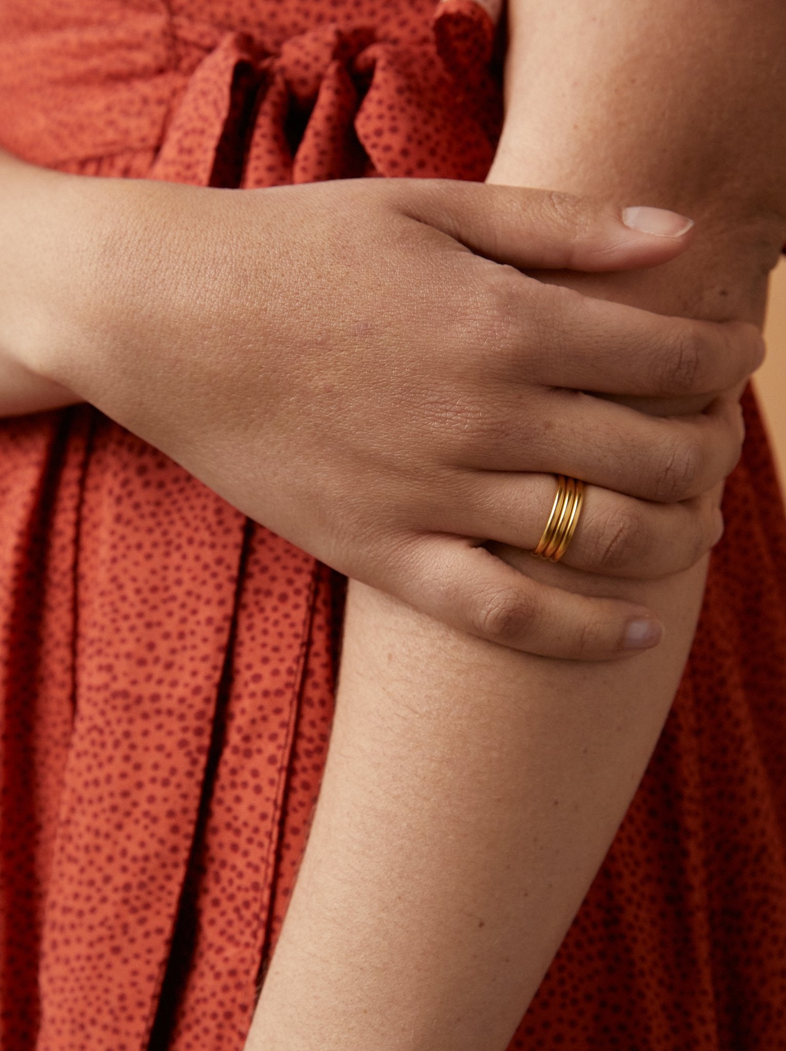 Wear it alone, or add it to your stack! The Triple Wave Ring makes a subtle statement piece that can be worn with any outfit.